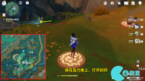 5、我们需要前往悬练山,到达悬练山了之后我们可以踩一踩压力板,这样洞口的封印就会被解开了哦。