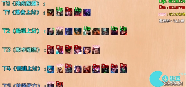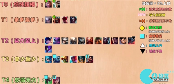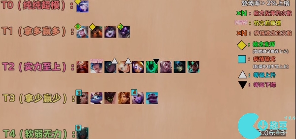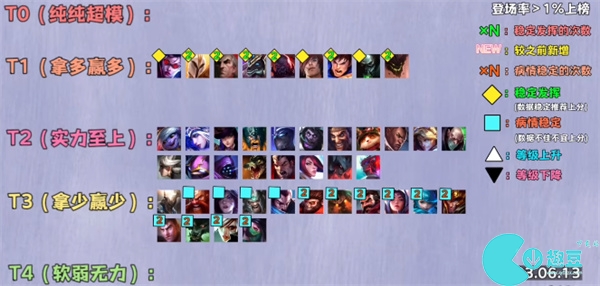 T3:阿卡丽、杰斯、皎月、加里奥、永恩、剑豪、卢锡安。