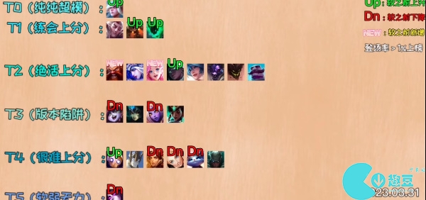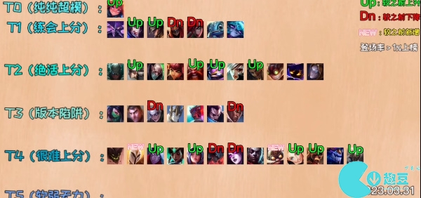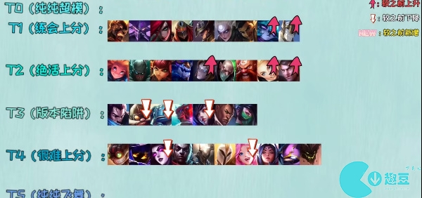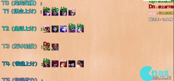 T2:剑魔、酒桶、诺手、武器大师、永恩、女刀、小鱼人、劫、潘森、龙龟;