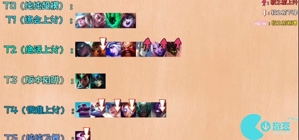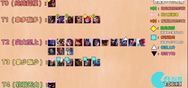 T3:潘森、酒桶、卡莎、蛮王、剑豪、猴子、泰坦、男枪、刀妹、皇子、杰斯、狼人、阿卡丽;
