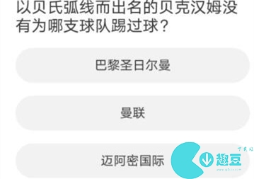 问题9、以贝氏弧线而出名的贝克汉姆没有为哪支球队踢过球?