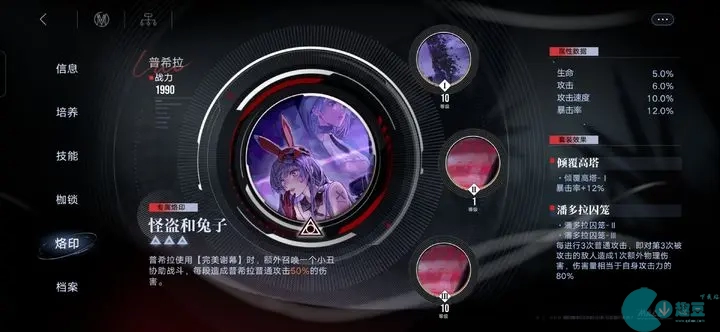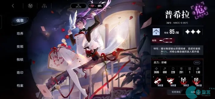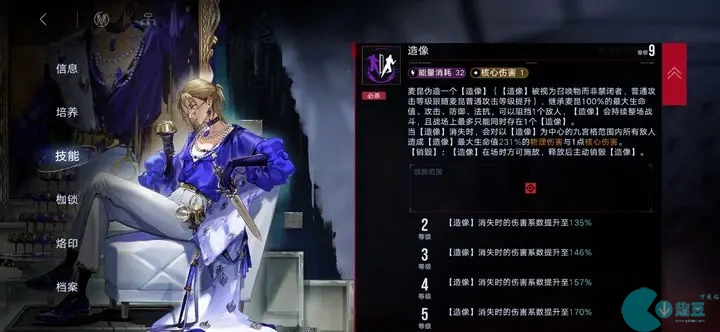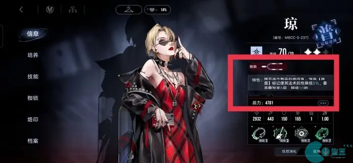 4. 琼:特性挂标记**法抗,开专可以引爆死亡目标的标记造成aoe伤害,法术版兰利。应付怪群或者在暗域熔兽特攻有奇效,推荐和橡木匣 娜恰 维多利亚这类AOE输出使用。