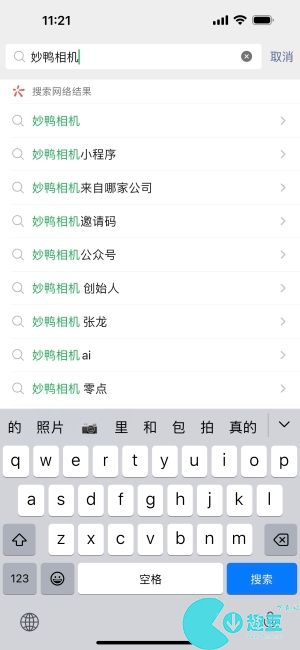 1、打开手机微信,在微信搜索框中输入【妙鸭相机】进行搜索。