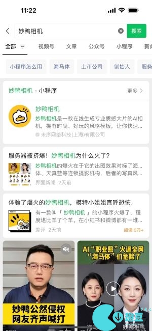 2、搜索之后,点击下方【妙鸭相机】就可以进入小程序。