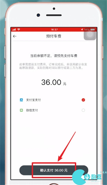 第三步、点击【确认支付】即可,这里要注意的是首汽约车是预收款哦,订单完成后如果多收会退还钱款。