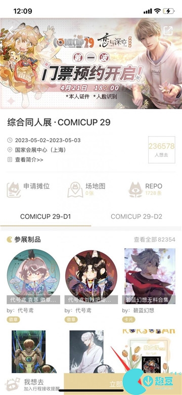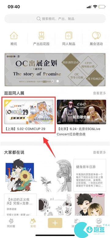 **步:下载并打开cpp客户端,点击首页【COMICUP 29】图片,进入展会详情页面;