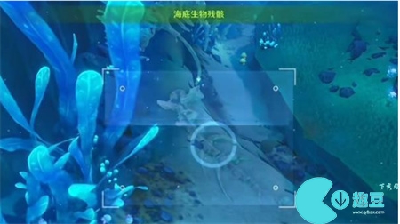 4、在上浮的过程中观察,能够在西边海底找到生物残骸使用留影机拍摄。