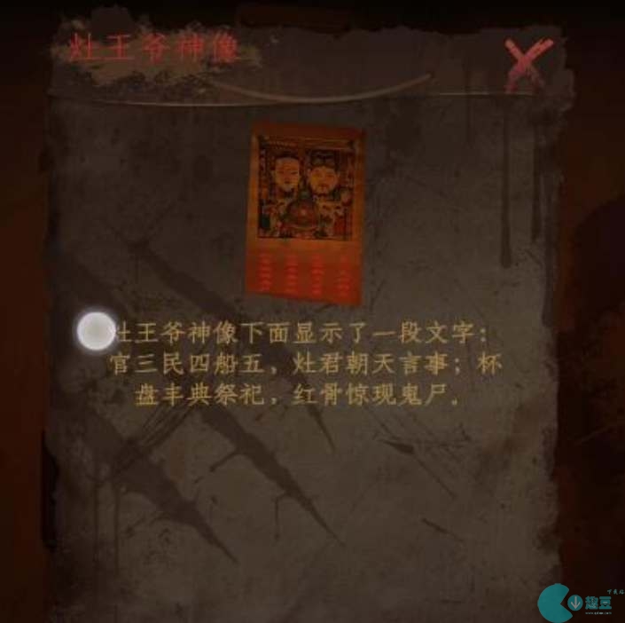 5、将红骨丢进铁锅煮,水蒸气会让灶王爷神像上显示文字“官三民四船五”,对应的是铁盒上而定密码【534】