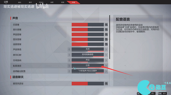 2、进入设置界面之后,点击上面的【声音】,将配音语言切换为日语即可;