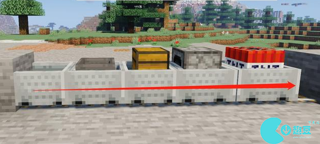 ps:1、为了方便你们适应性参考,已经在矿车两段各加一个方块阻挡,且铁轨均为普通式。2、打掉多功能矿车后会分离出来,以便再次合成。