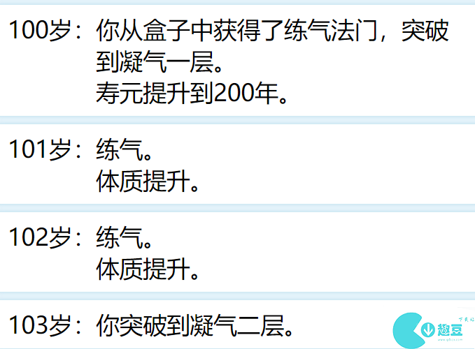 3、达到年龄,开启盒子,就能自动进入修仙模式。