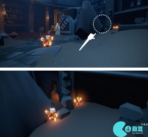 1、首先我们到追忆季新地图:难民储藏室,往先祖旁的挂着的黑布走过去。