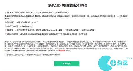 1、玩家进入元梦之星官网找到测试报名**按钮进入问卷。