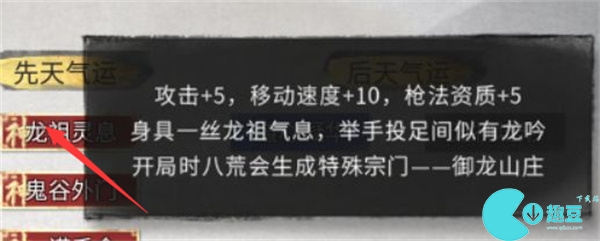 1、首先玩家开局天赋选择“龙祖灵息”可以解锁御龙山庄。