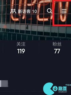 1、进入抖音后,我们来到自己的个人主页,点击右上角的设置标志(三条横杆);