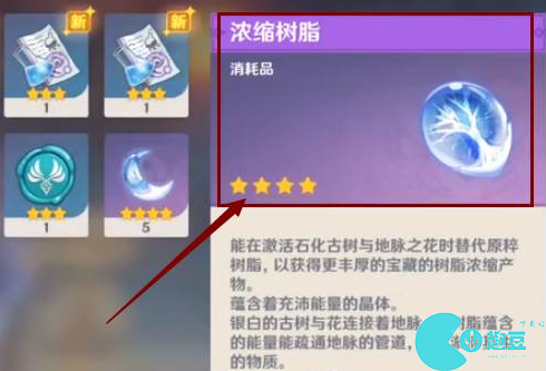 4、浓缩树脂相当于储存体力的一种手段,比如说队伍主C需要的天赋突破材料。