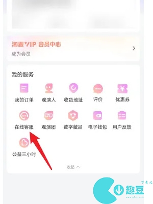 2、在个人信息界面我们找到在线客服功能,点击进入;