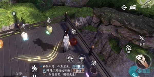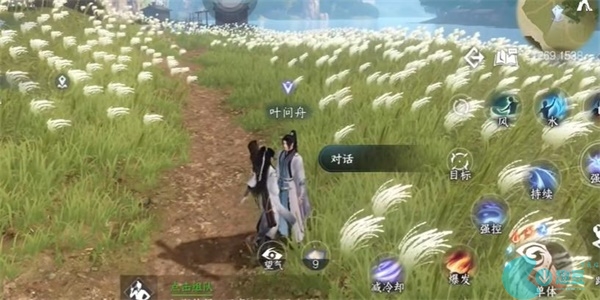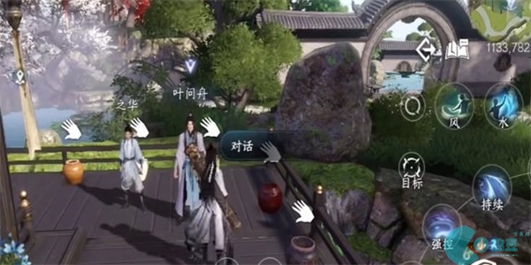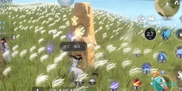 5、我们到达目的地之后,我们继续与师兄进行对话,跟随迷蝶的顺序,使用风技能**石柱。