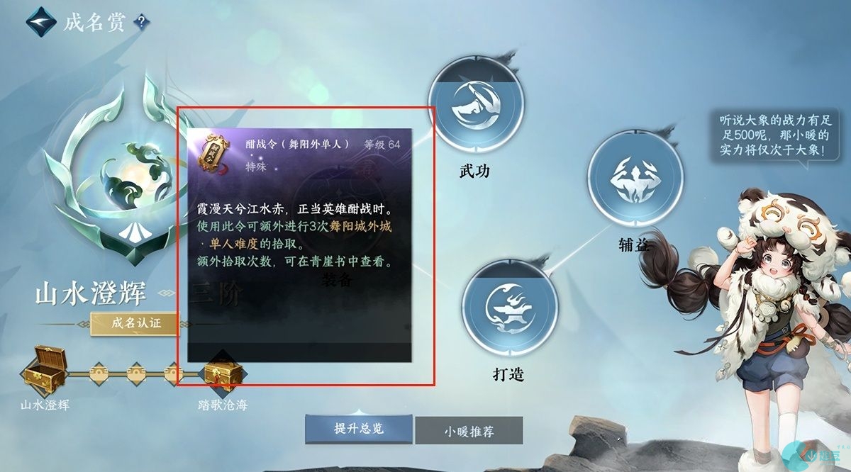 首先角**面-成名赏,修为达到36000可领取酣战令(单人);