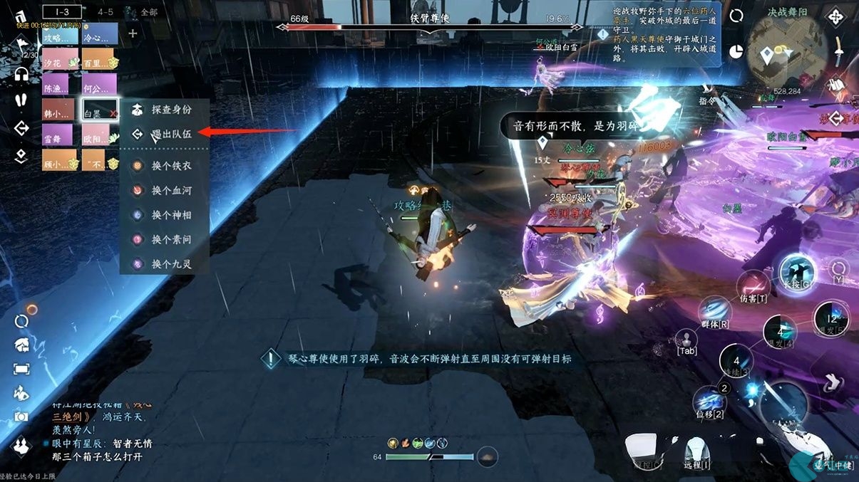 5、被控赶紧教解控跑持续输出一段时间后,人机可能会大量死亡,我们要**点击踢出队伍,然后进入战斗。