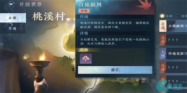 1、首先我们前往标记好的位置桃溪村【944,1064】,去完成白猿献图奇遇。