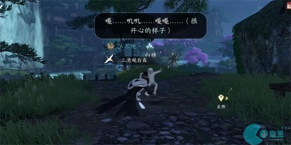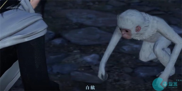 3、我们到达目的地之后,就会看到一只白色的猿猴,我们需要与它进行玩耍即可。