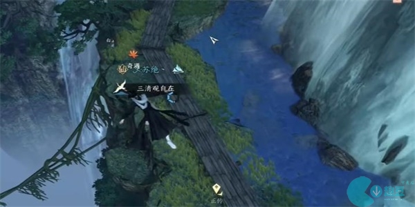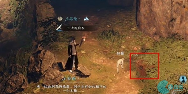 4、接着白色的猿猴就走开了,任务就会提示我们需要跟着小猿猴前行,一路走到空谷中的山洞里面。