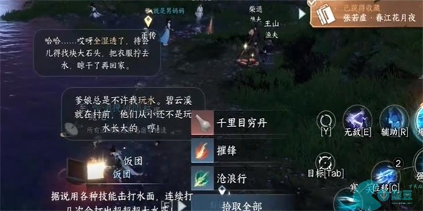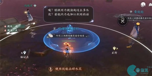 2、我们到达目的地之后,就靠近河边,使用普通技能打出水花之后,就会出现一个水球,我们在使用技能控制住水球并且击碎它。