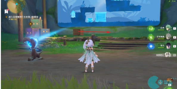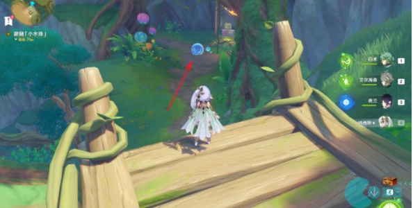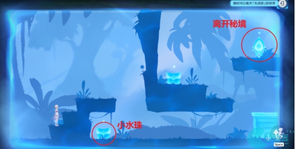 3、传送到秘境之后我们进行探索,与小水珠对话;
