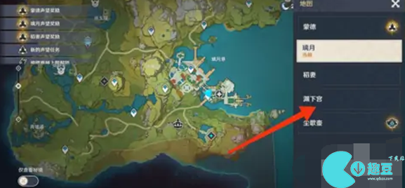 1、首先我们打开游戏,然后打开地图找到渊下宫的位置传送过去。