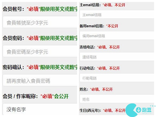 2、接着填写会员资料,主email信箱、连络电话、姓名、生日、通讯地址等信息必填。