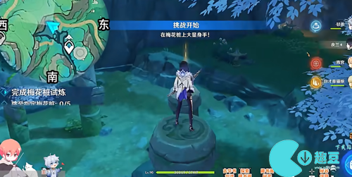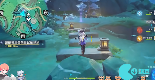 5、接着开始挑战,在这个石柱子上走,不要掉下去,继续点击任务追踪,跟着走