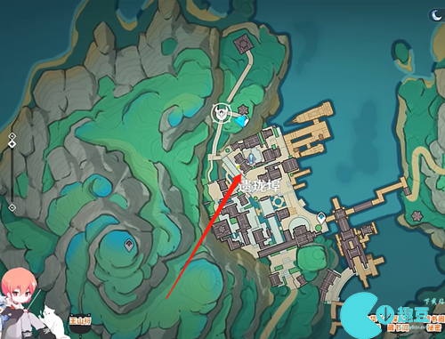 1、首先将地图打开来到下图传送点的位置,到了之后往南方向地图的下方走去