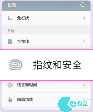 1、在设置界面,找到【指纹和安全】;