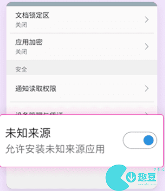 2、随后开启【未知来源】,在弹出的对话框点击【确定】。
