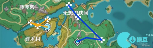 4、「稻妻城主城」下方传送点 1条路线 6只鬼兜虫