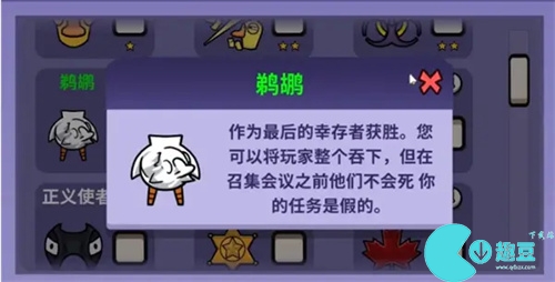 正义使者 – 你可以杀死**一名玩家而不会造成**后果,它可以是鹅或鸭子。