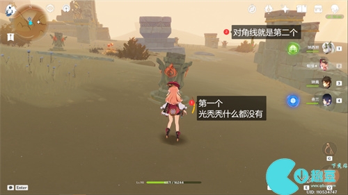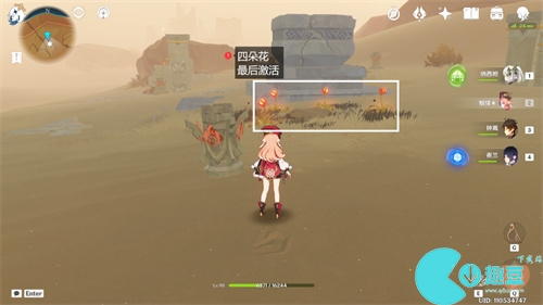 1、秘境位于沙漠地图最西北的边上,周围神像和传送点都比较远,从北侧传送点来会有四叶印