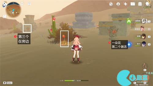 4、第二个点亮前注意,周围一朵烈焰花与一个仙人柱。激活后直接去西侧旁边的仙人柱处即可看见第三个。