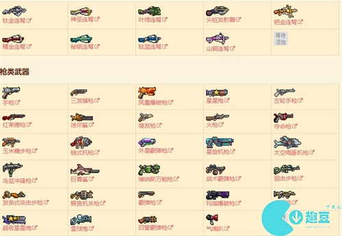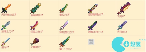 泰拉瑞亚当中有非常多的武器,不管是通常武器还是到魔法书和法杖种类**的繁多,所以今天小编给大家带来一期全武器的图鉴给大家,感兴趣的玩家不妨来了解一下吧。
