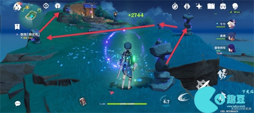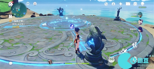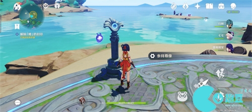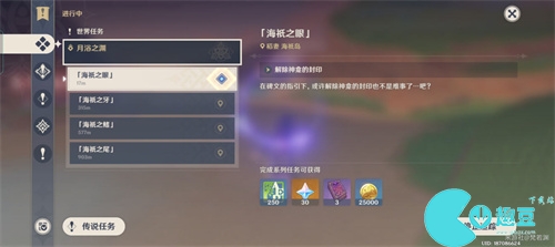 从这里下去,进去后类似海祗之鳍的解密,转动鱼像后祭拜尊像,锁定鱼像,上下左右四个尊像,如果上面那个没激活,就试试祭拜右边的尊像,建议带雷元素角色,要打水拟怪,结束后任务完成。