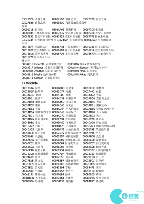 00034D31 精灵耳 00034D32 寒霜甘草 0003AD56 查鲁斯之卵