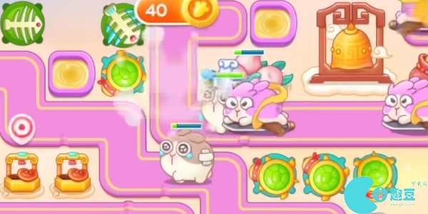 3、将下方障碍物清理后修建瓶子炮,乌龟和鱼骨,乌龟全程自动攻击兔子,瓶子炮和鱼骨继续清理障碍物。