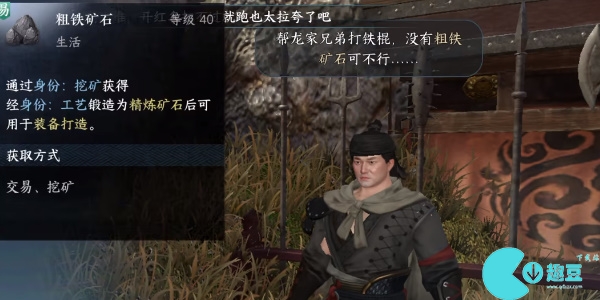 3、我们将铁疙瘩需要的粗铁矿石交给他让他帮龙家两兄弟打造武器。