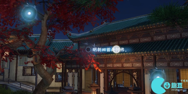 3、接着随镜头转到讲堂选择中间光点写出第二句词(明朝回首是何佛。)。