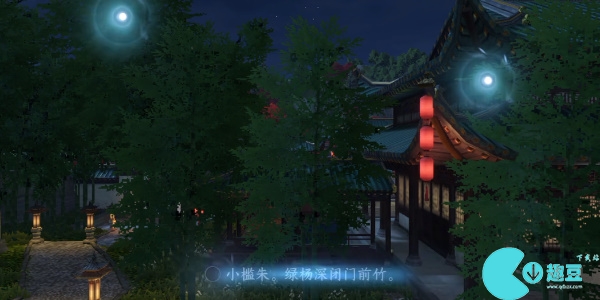 4、继续随镜头转到竹林选择下方光点由意象写出第三句(小槛朱,绿杨深闭门前竹。)。完成词话忆王孙。
