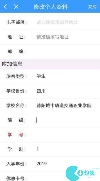 2、然后点击右上角的【修改】,在学生类型中选择【学生】,然后按要求添加【学校省份、学校名称、院级、学号、优惠区间】,大家需要按照学生证上的来填哦;