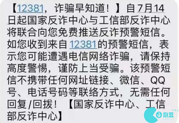 **步:2021年7月14日,**反**预警短信12381正式上线了,该预警短信不包含**的网址链接,微信账号,QQ账号,电话号码等联系方式,不需要做**的回复,如果你收到了12381的短信,那么表示你可能正在遭遇电信网络**,需要你保持高度警惕,以防上当受骗。