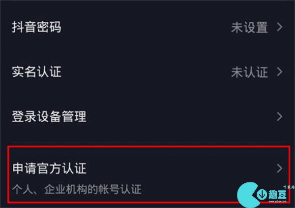 我们进入账号与安全之后,我们找到里面的申请官方认证功能。