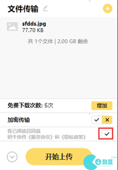 第三步、勾选同意服务协议,点击开始上传功能选项,就可以上传需要的文件成功。